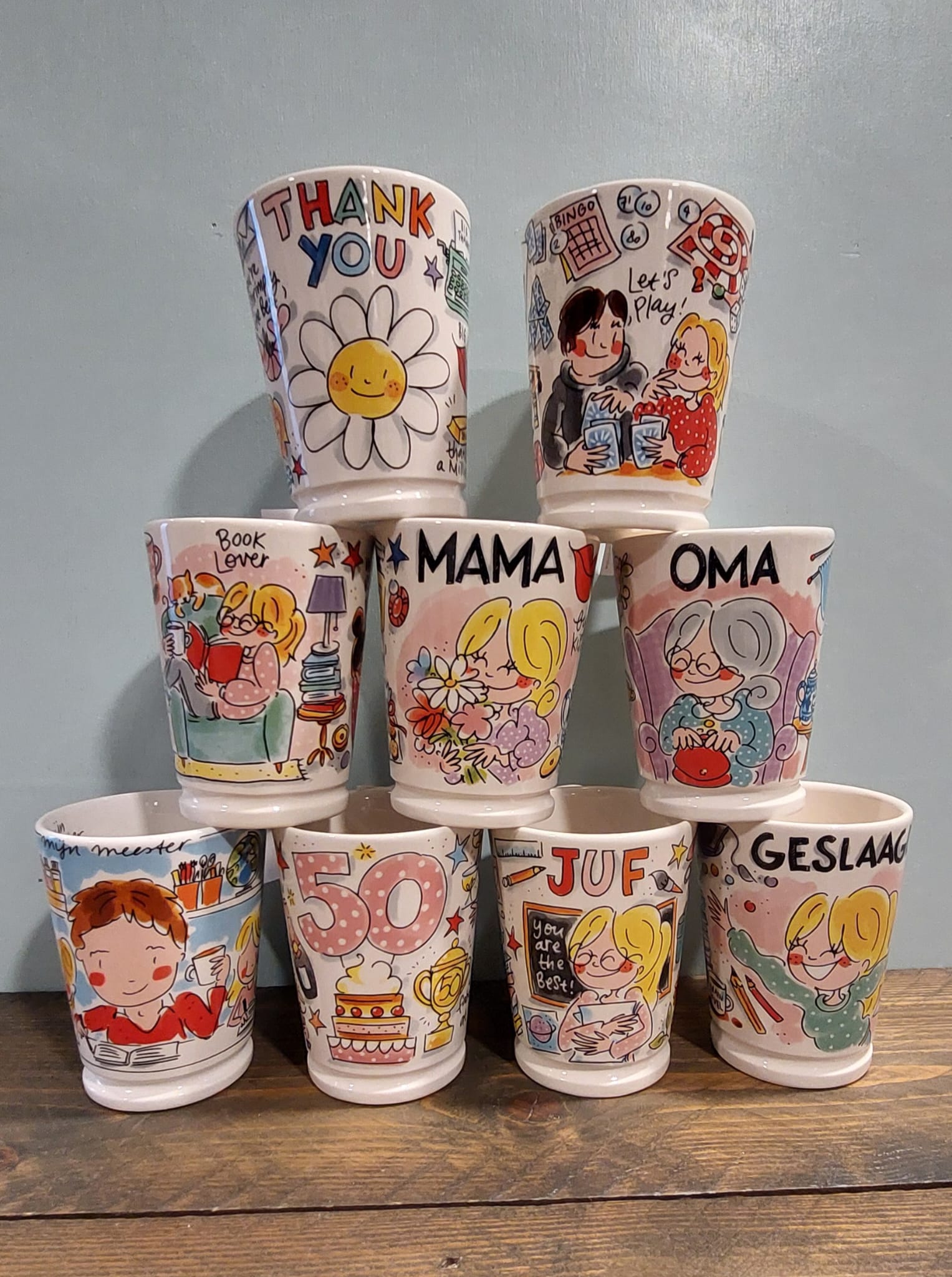 De Blond collectie bestaat uit verschillende servieslijnen van het oud-Hollandse Delfts Blond tot het kleurrijke en vrolijke Even Bijkletsen.