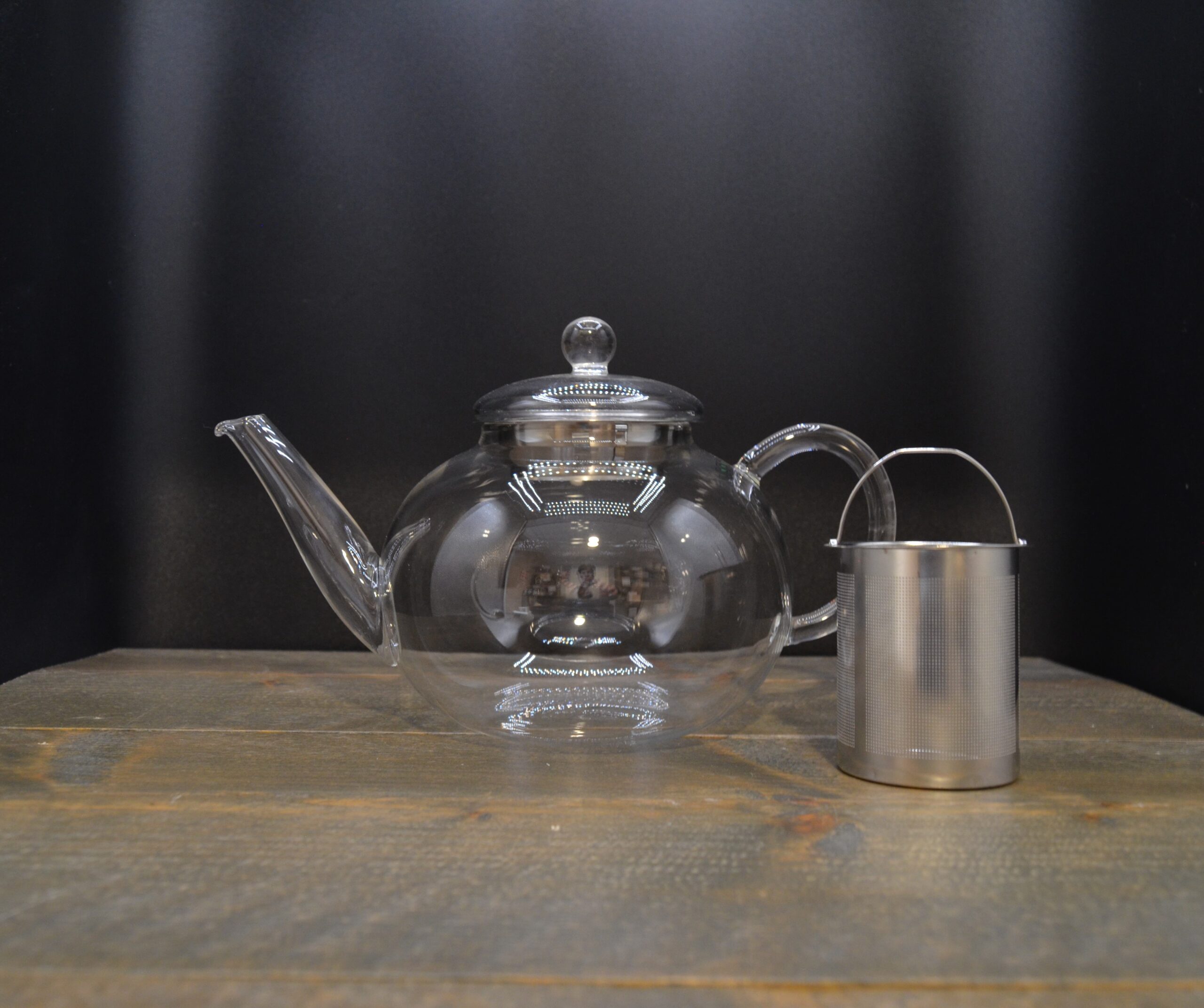 Theepot gemaakt van hittebestendig borosilicaat glas inclusief roestvrijstalen filter met fijne gaatjes.